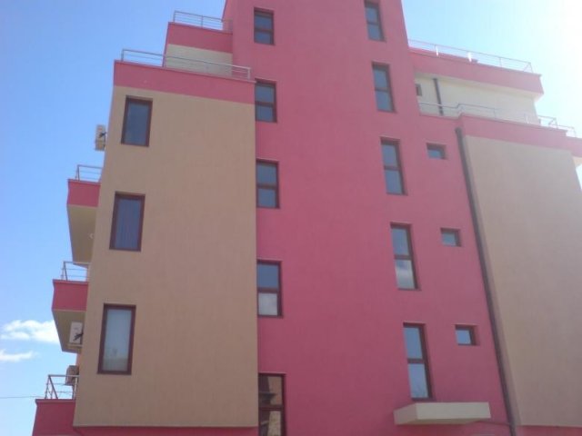 Самостоятелен двустаен апартамент / за 5 човека / в новопостроена сграда на 200 м. от централния плаж, до калните бани. Втори жилищен етаж, хидравличен асансьор. Кабелна ТВ, телевизор, хладилник, ютия, ортопедични матраци. Едната стая е със спалня и единично легло, дневната е с кухненски бокс, маса и 2 ъглови легла. Бокса разполага с кафемашина, пълен комплект кухненска посуда. Комфортно ново обзавеждане. Обща тераса пред двете стаи. КЛИМАТИК - без допълнително доплащане на вечер!